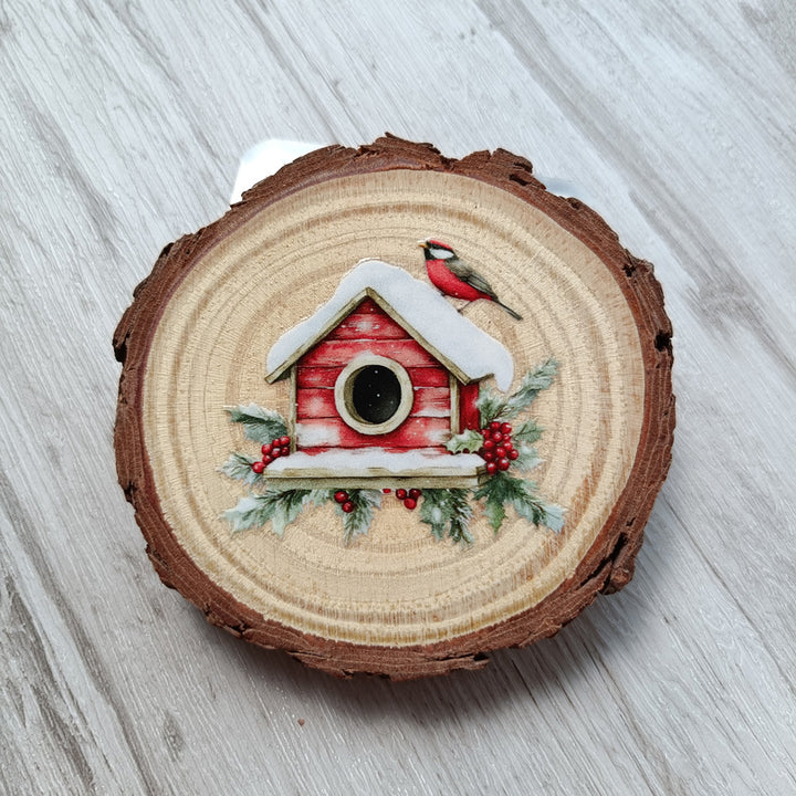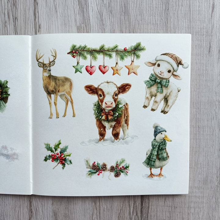 Christmas Farm Matte Transfer Stickers can be used on paper surfaces like journals, notebooks, scrapbooks, and cardstock — and on hard, flat surfaces such as wood ornaments, glass, plastic boxes, or ceramic jars.