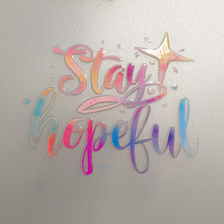 New Year Sentiments Transfer Stickers can be used on paper surfaces like journals, notebooks, scrapbooks, and cardstock — and on hard, flat surfaces such as glass, wood ornament, phone cases, plastic boxes, ceramic jars, and more.