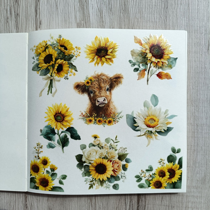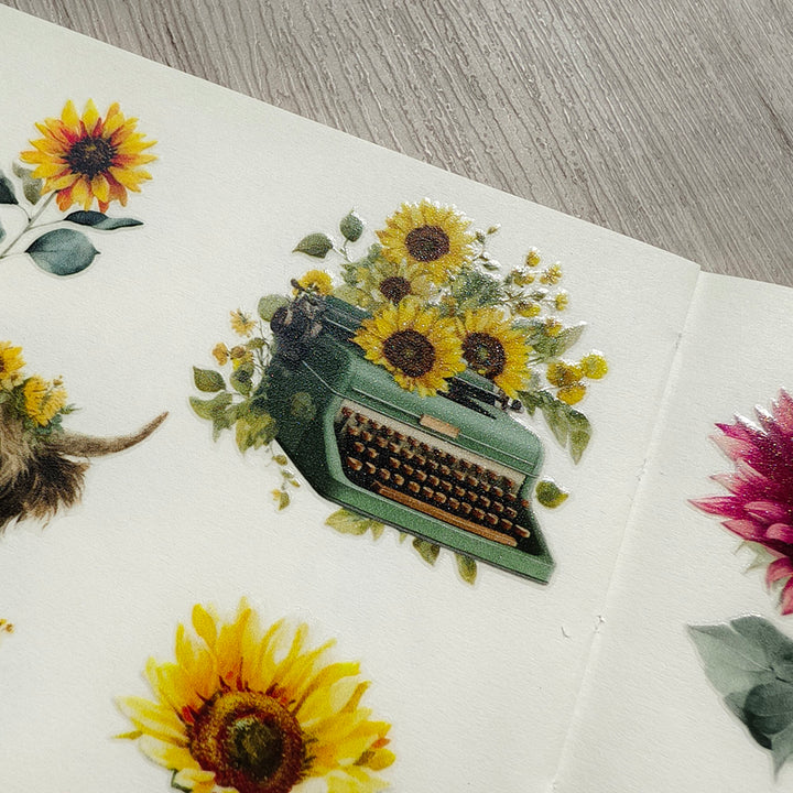 Bring the warmth of the countryside to your crafts with these Sunflower Farm Matte Transfer Stickers — featuring golden sunflowers, the beloved Highland cow, gentle bunnies, and cozy farmhouse details.